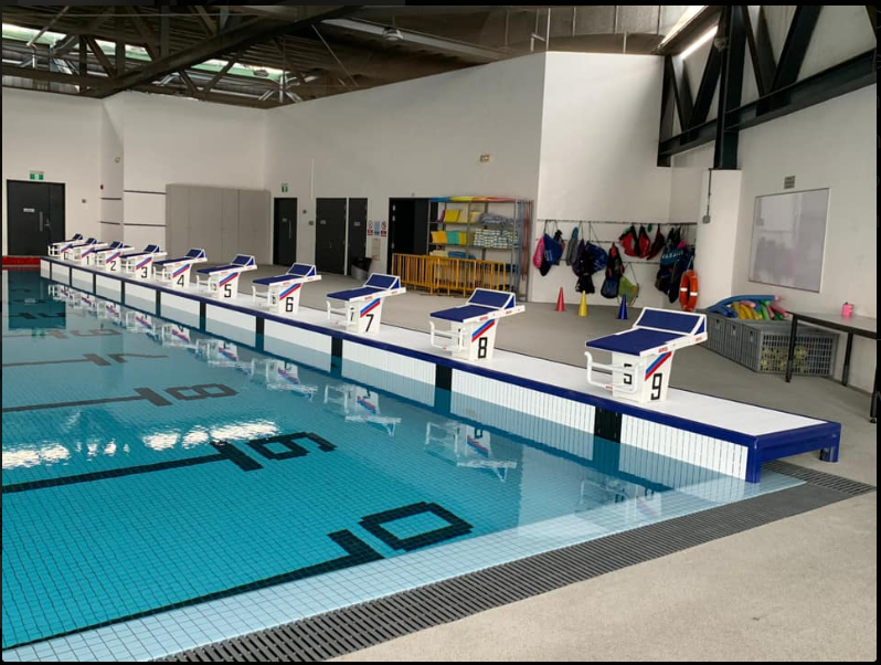 Anti Wave HiTec Endwall: Designed for overflow pools, this fiberglass endwall provides a raised platform for mounting starting blocks, meeting FINA specifications. It enhances pool deck height by 300mm without requiring drilling, utilizing the gutter for installation. Includes gratings for deck access and supports touchpad mounting. Ideal for competitive settings, it allows for customizable lengths and conceals timing cables underneath.